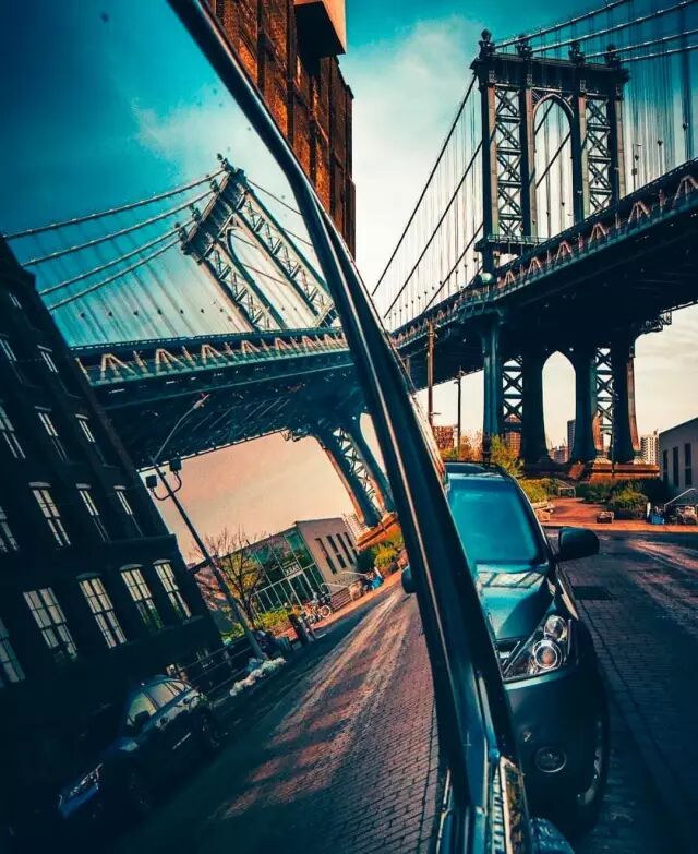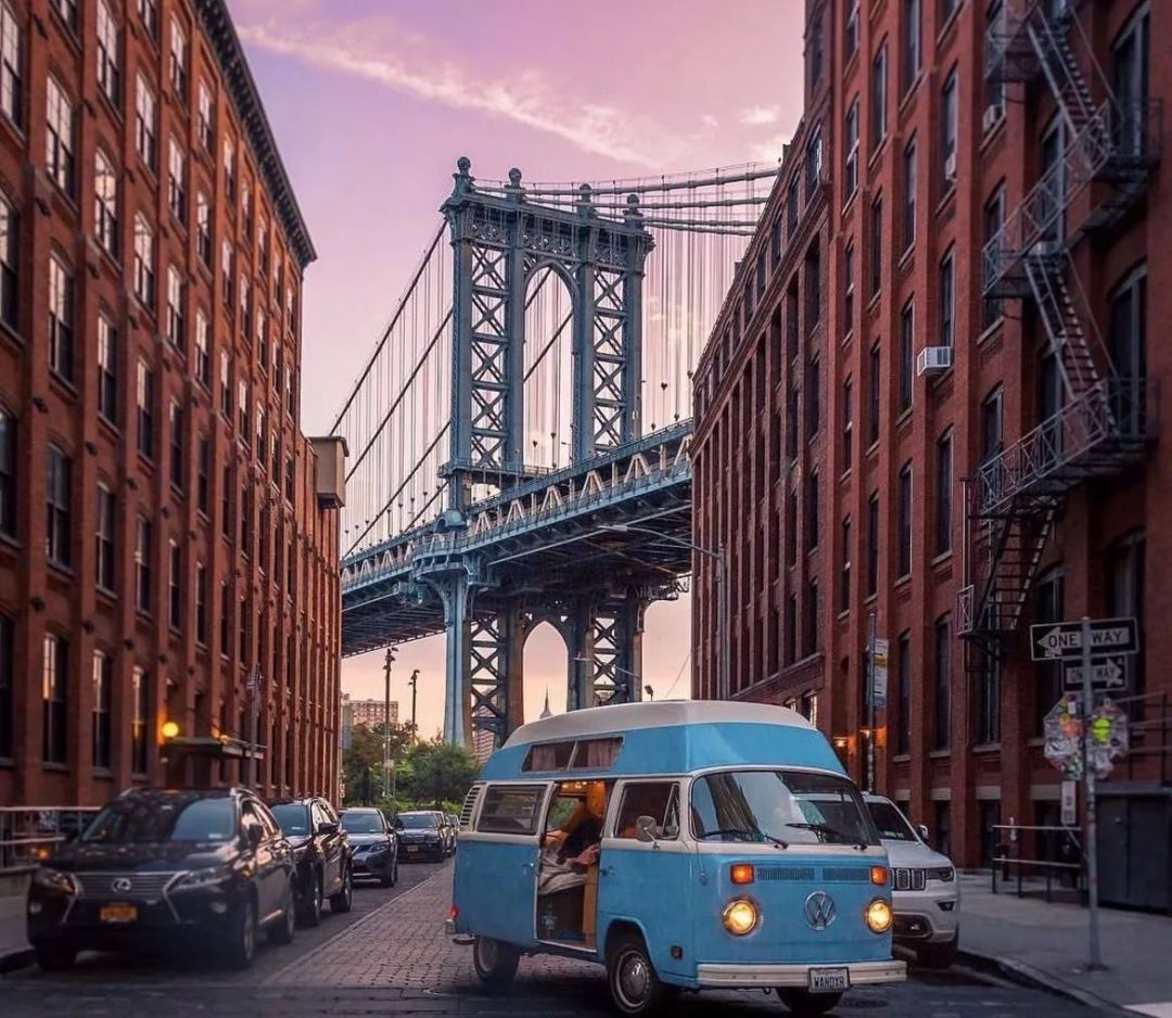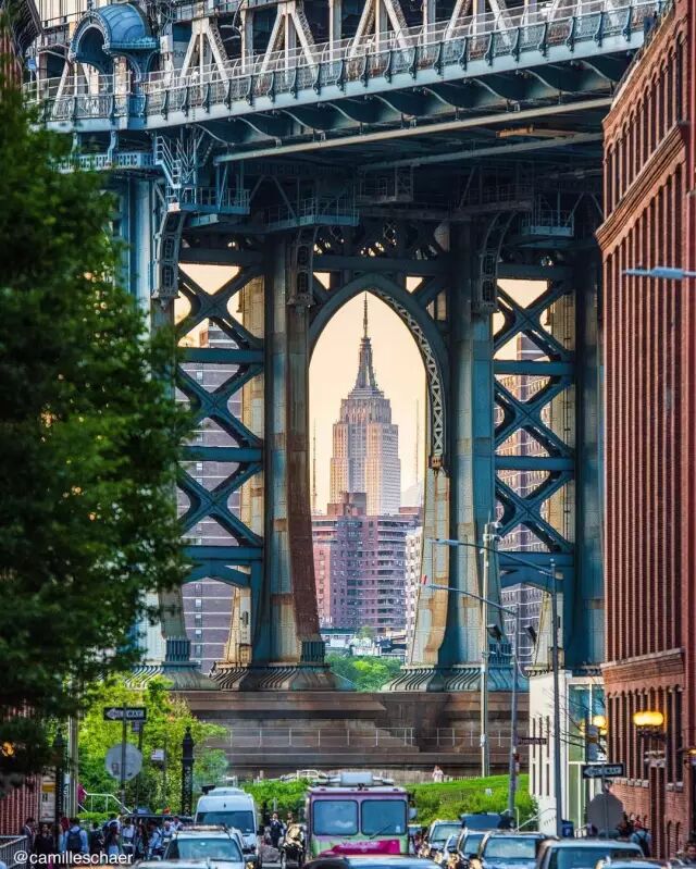 打卡曼哈顿大桥,最重要的不是在桥上欣赏纽约的城市天际线,而是要去拍到一张“双地标”(曼哈顿大桥+帝国大厦)的照片!